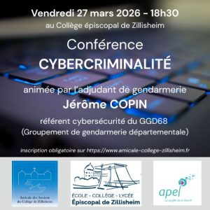 Conférence sur la Cybercriminalité vendredi 27 mars à 18h30 en salle 002 Collège de Zillisheim